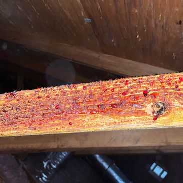 Attic sapping, is when sticky resin oozes from wooden beams in an attic, often appearing as orange beads or drips, caused by excessive heat making the wood's natural sap liquid again, signaling poor ventilation.